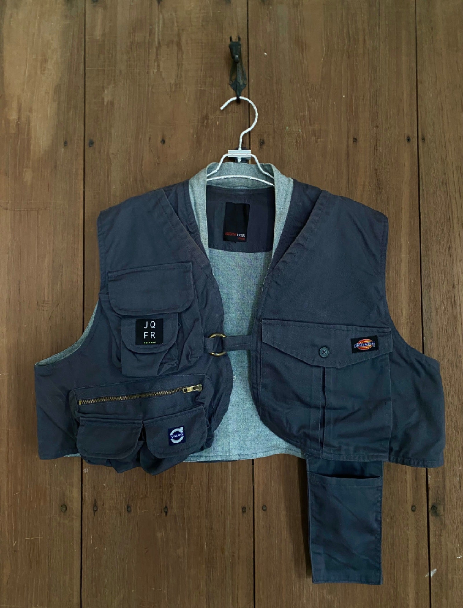 Ingenious design recreates Dickies pants into a versatile, multi-pocket vest. Experience functional style and unique adaptability for your urban adventures.
