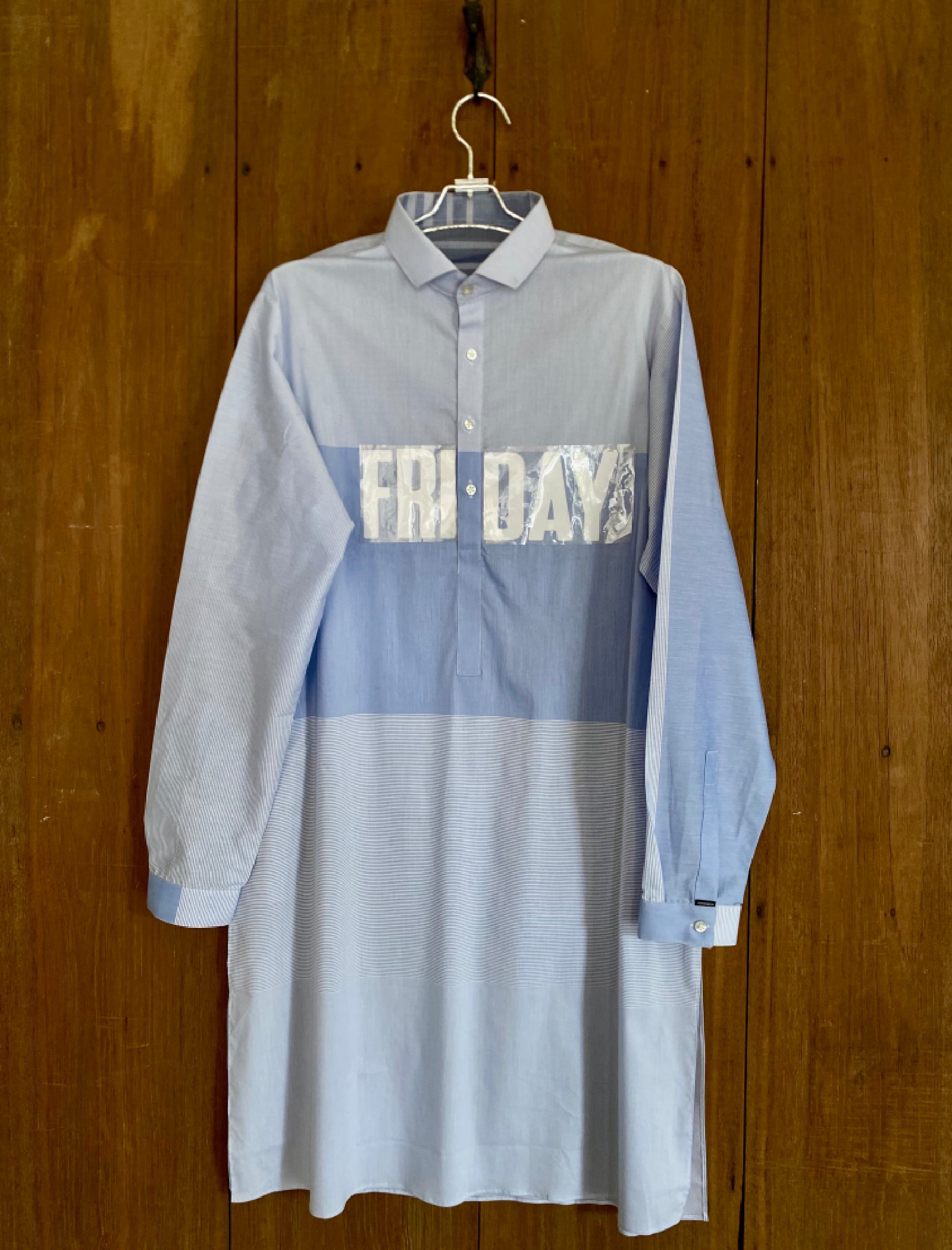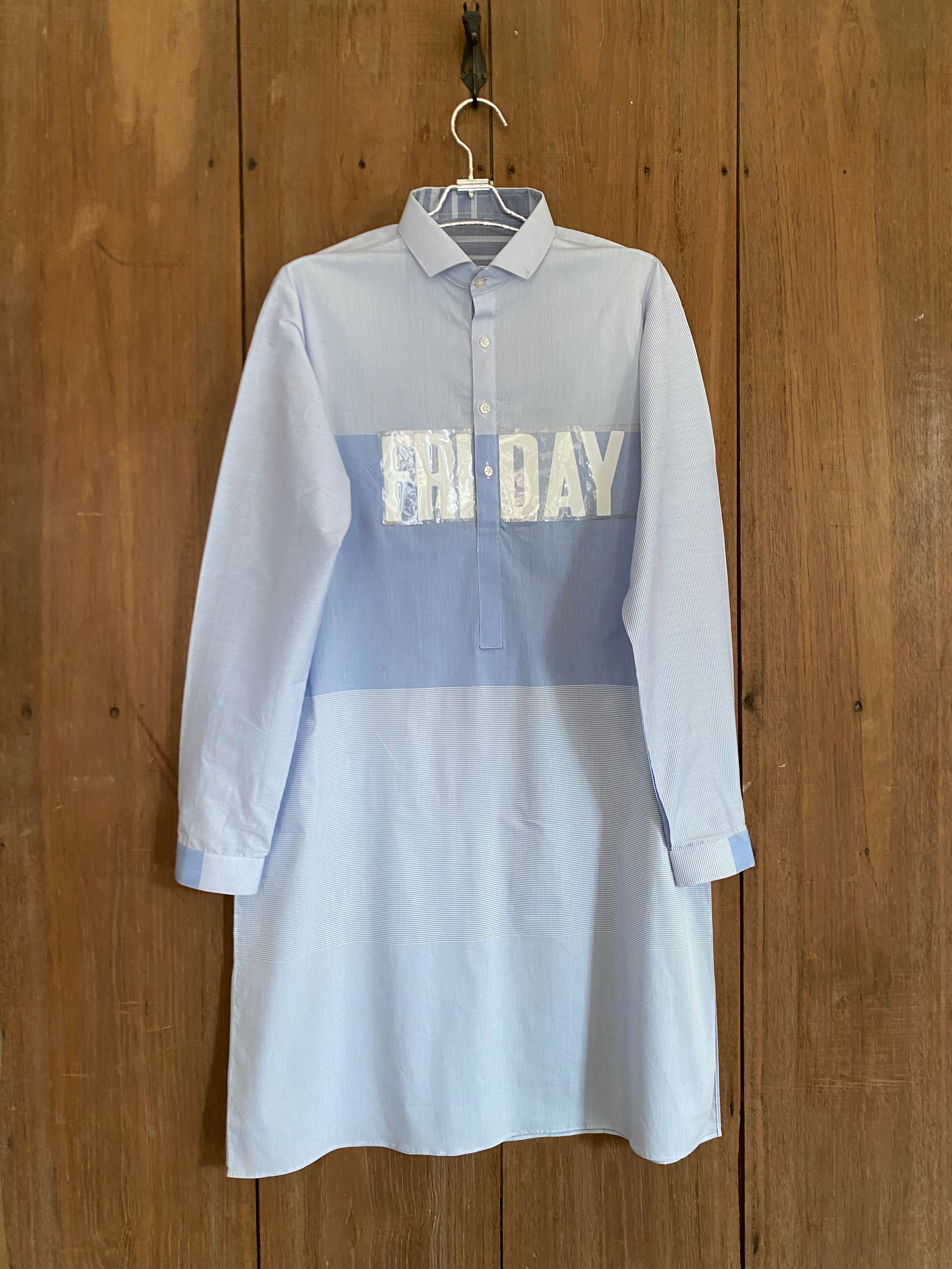 Light-colored kurta featuring bold "Friday" detail, crafted from breathable fabric—perfect for relaxed weekend vibes and effortless casual styling.