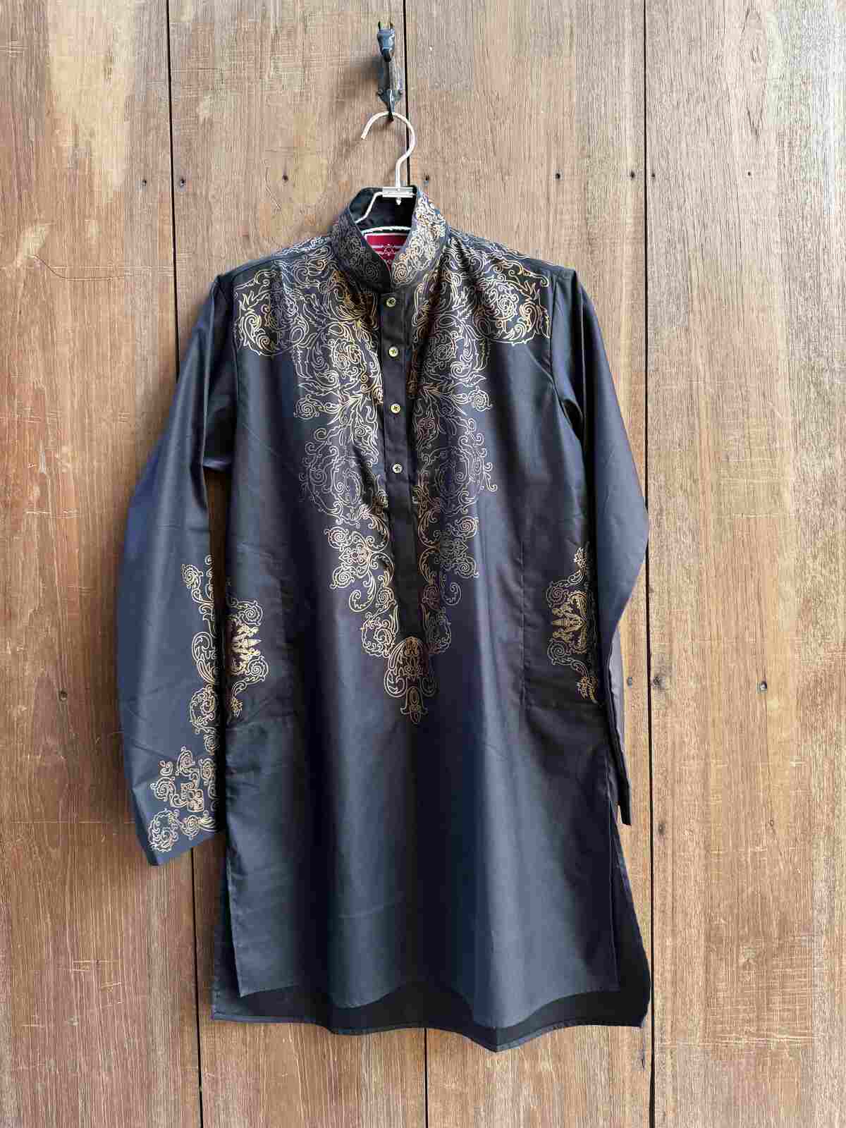 Short kurta featuring a striking printed neck design, crafted from breathable fabric—perfect for casual comfort with a stylish twist.