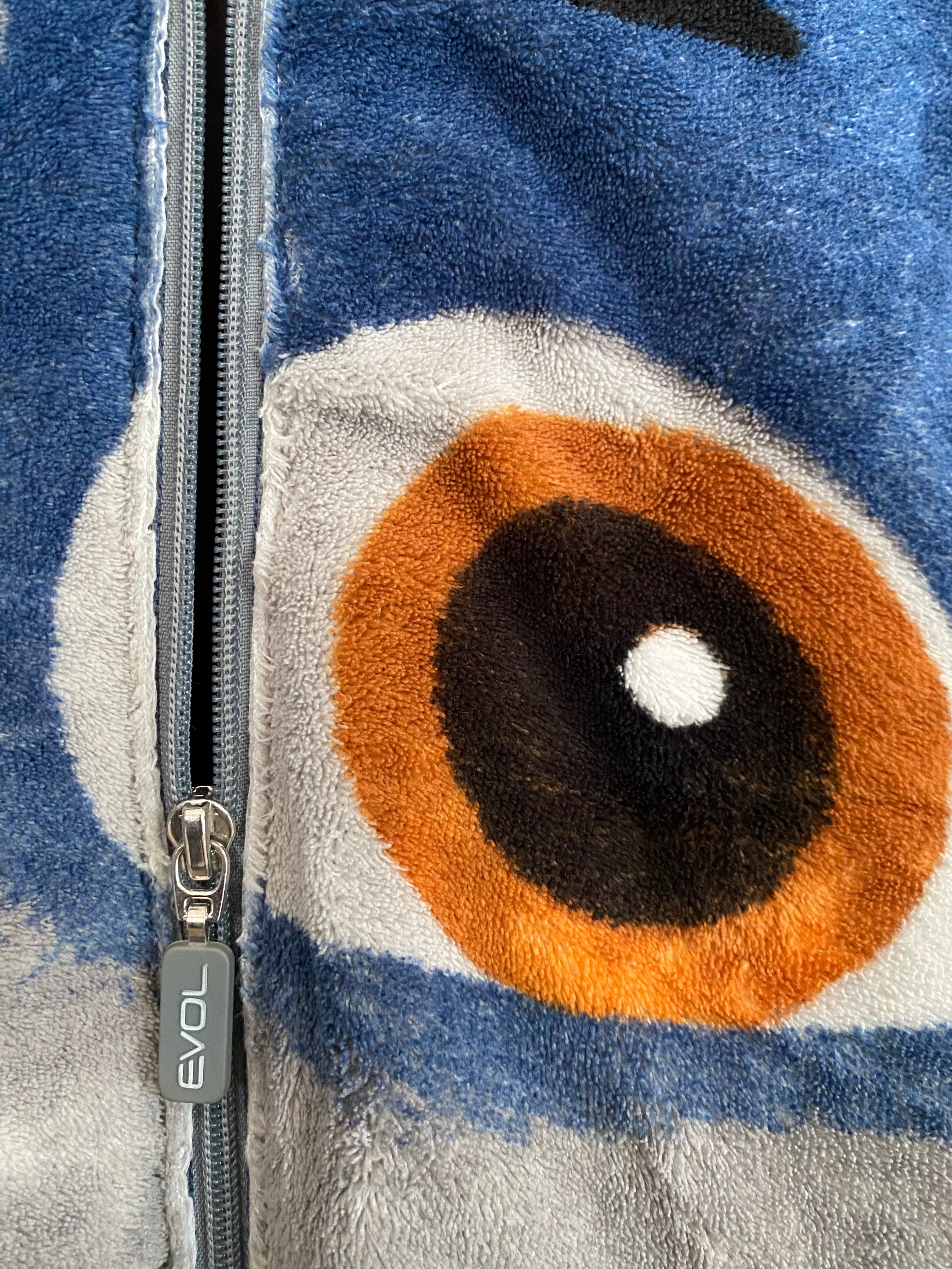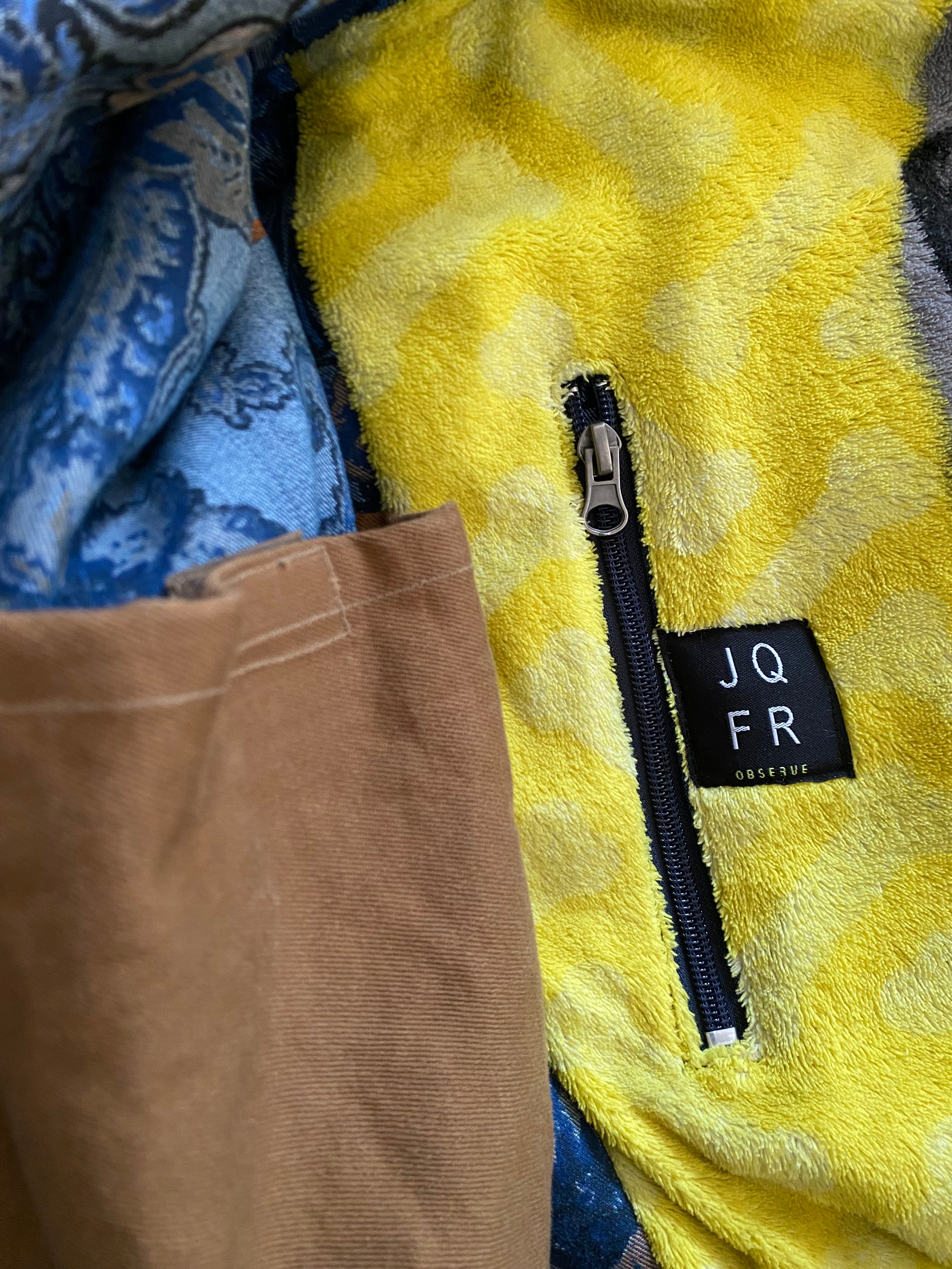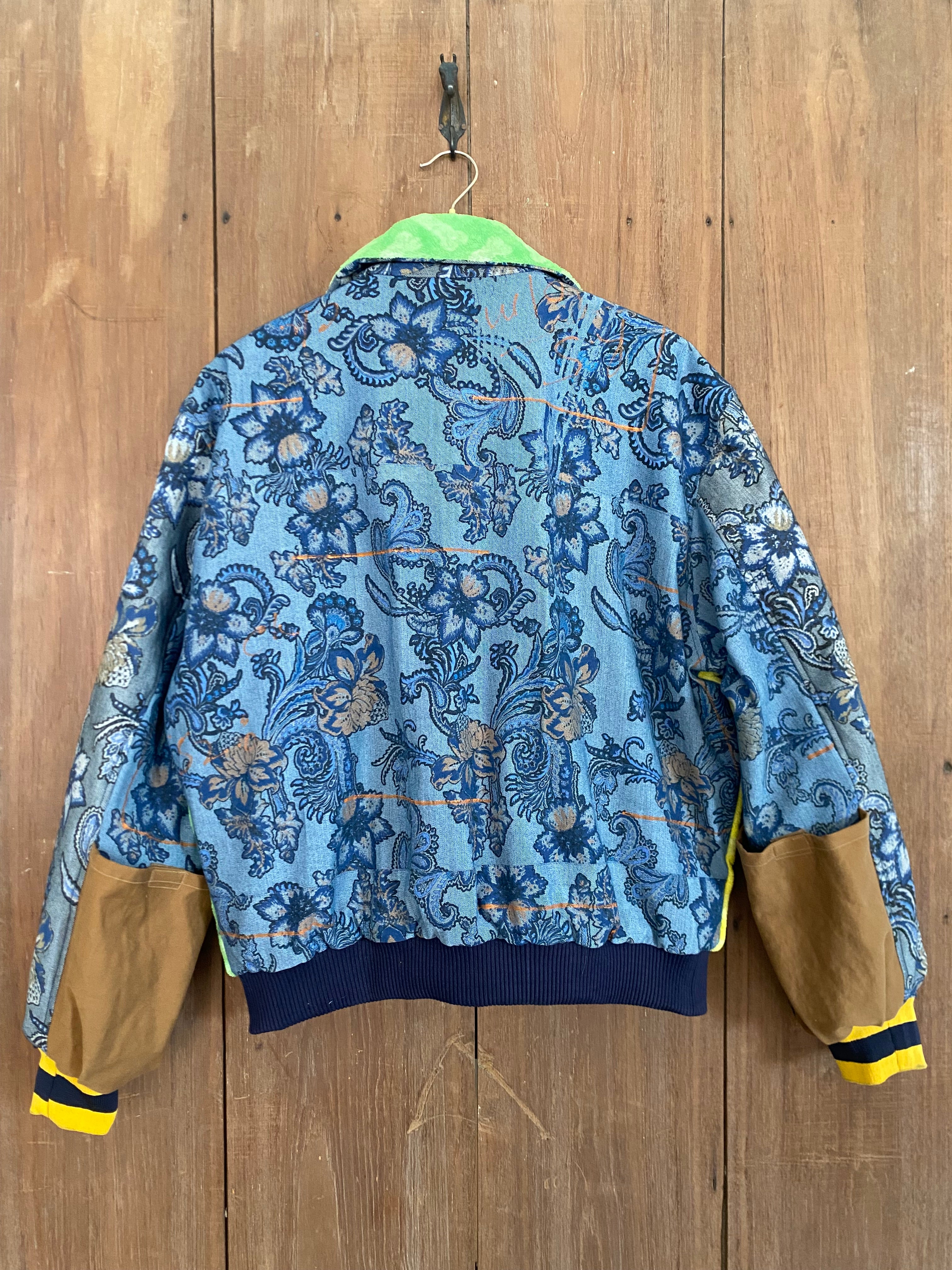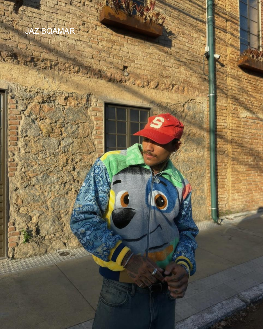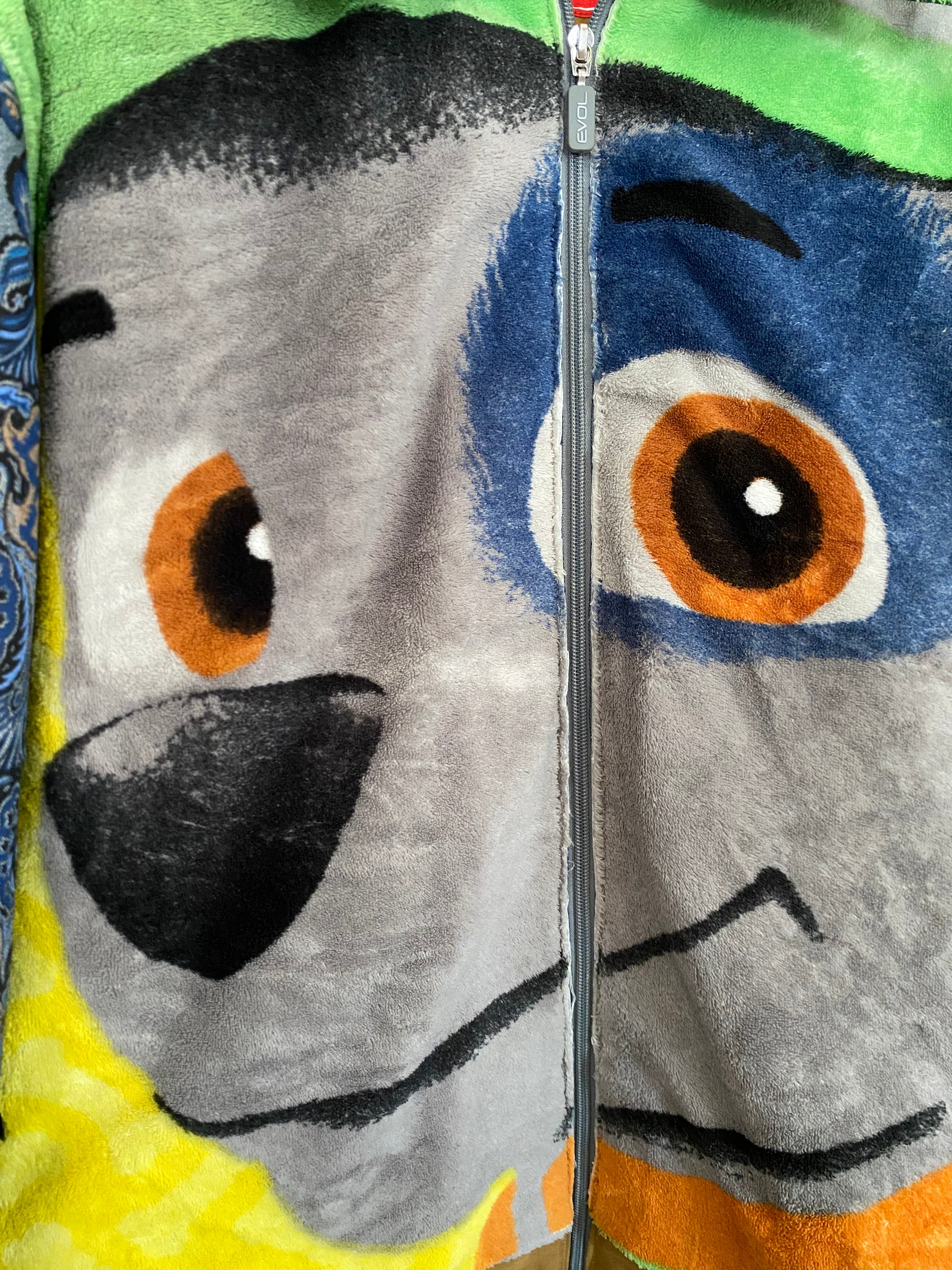 Colorful handmade winter jacket featuring Happy Panda cartoon artwork, premium fabric, zip closure, warm lining, and unique patchwork design perfect for streetwear lovers, statement fashion, and bold winter styling.
