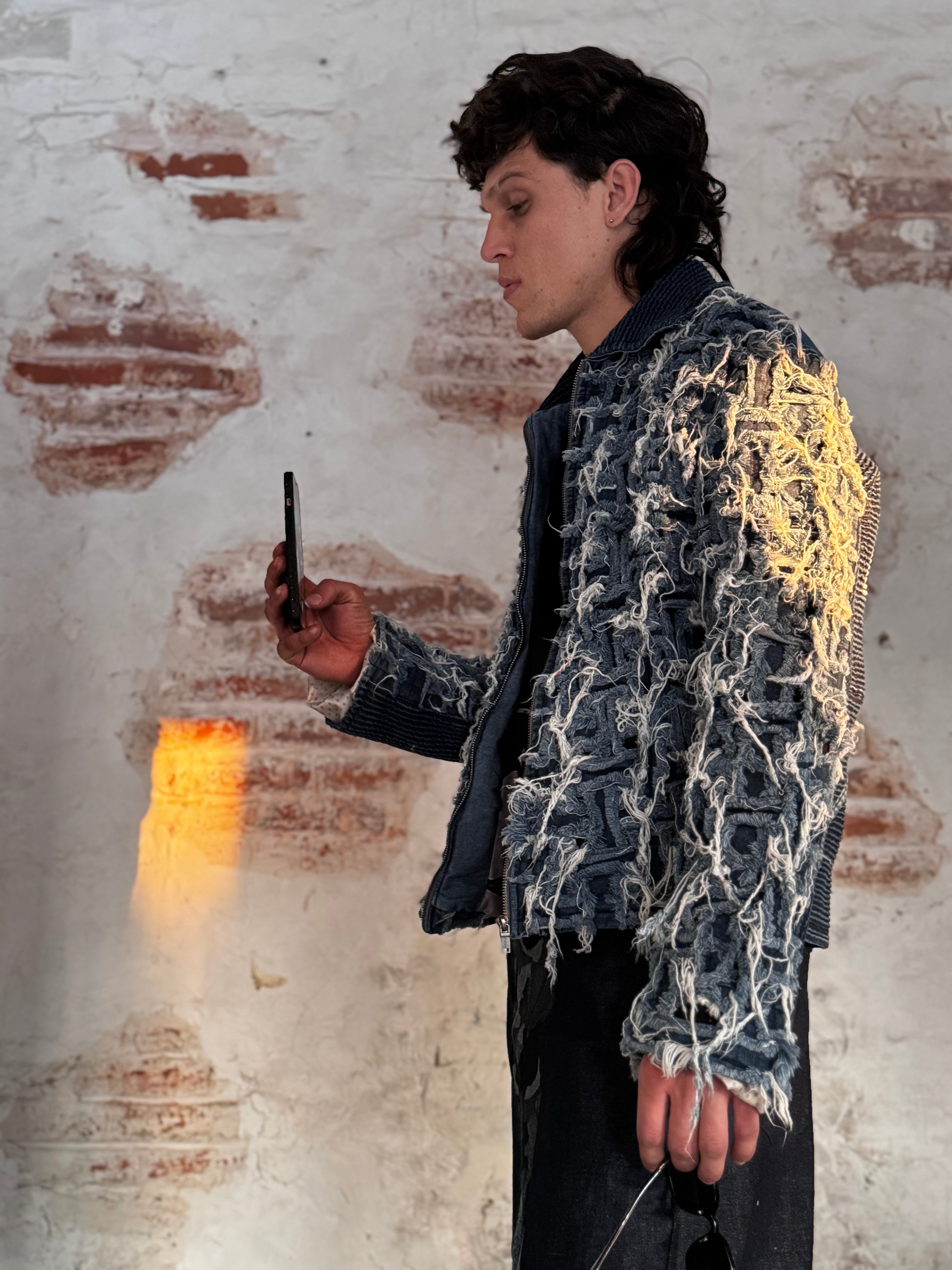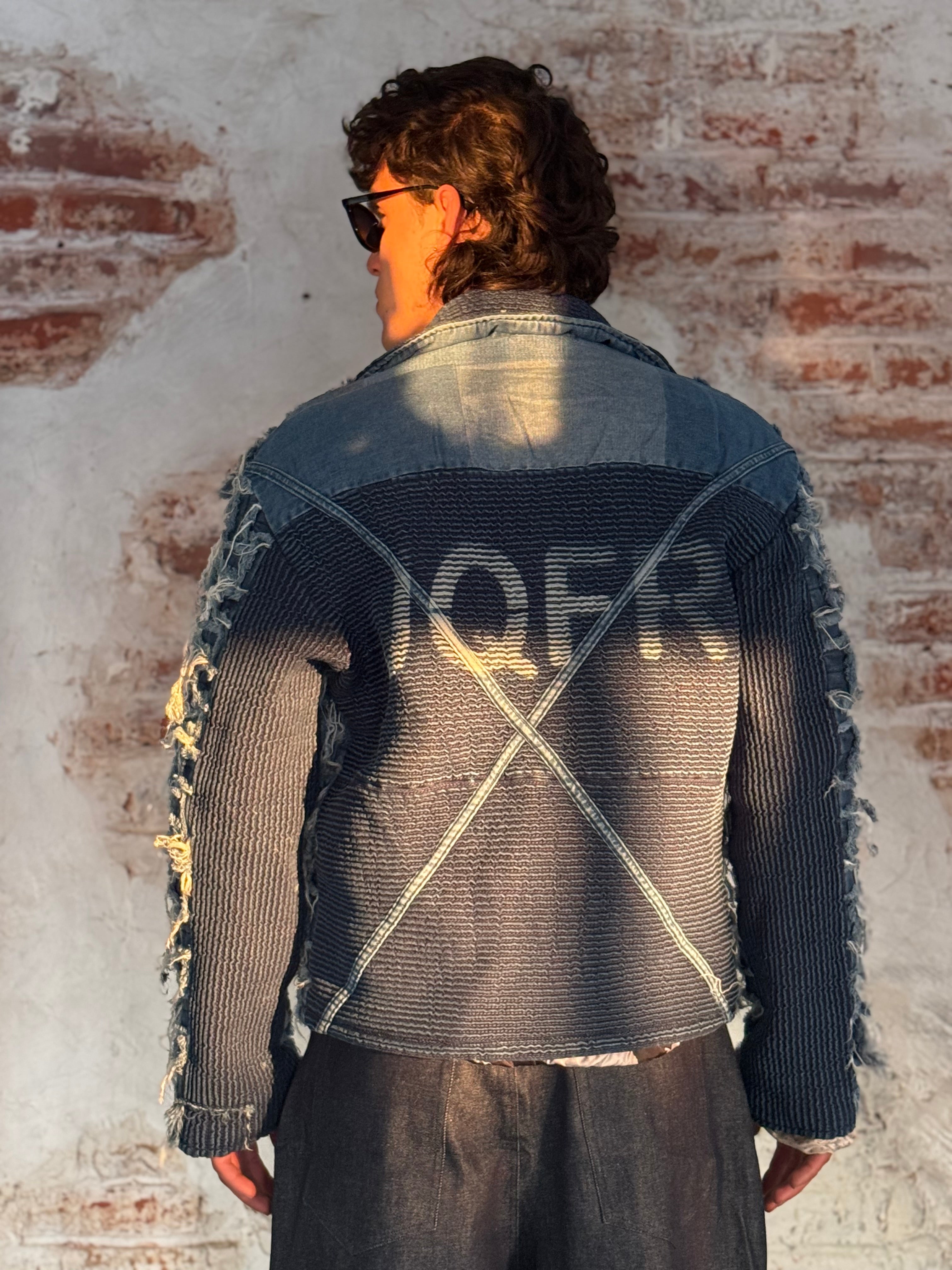 Reart denim jacket handcrafted with time and precision, stone washed through chemical experiments, every thread shaped by human artistry.